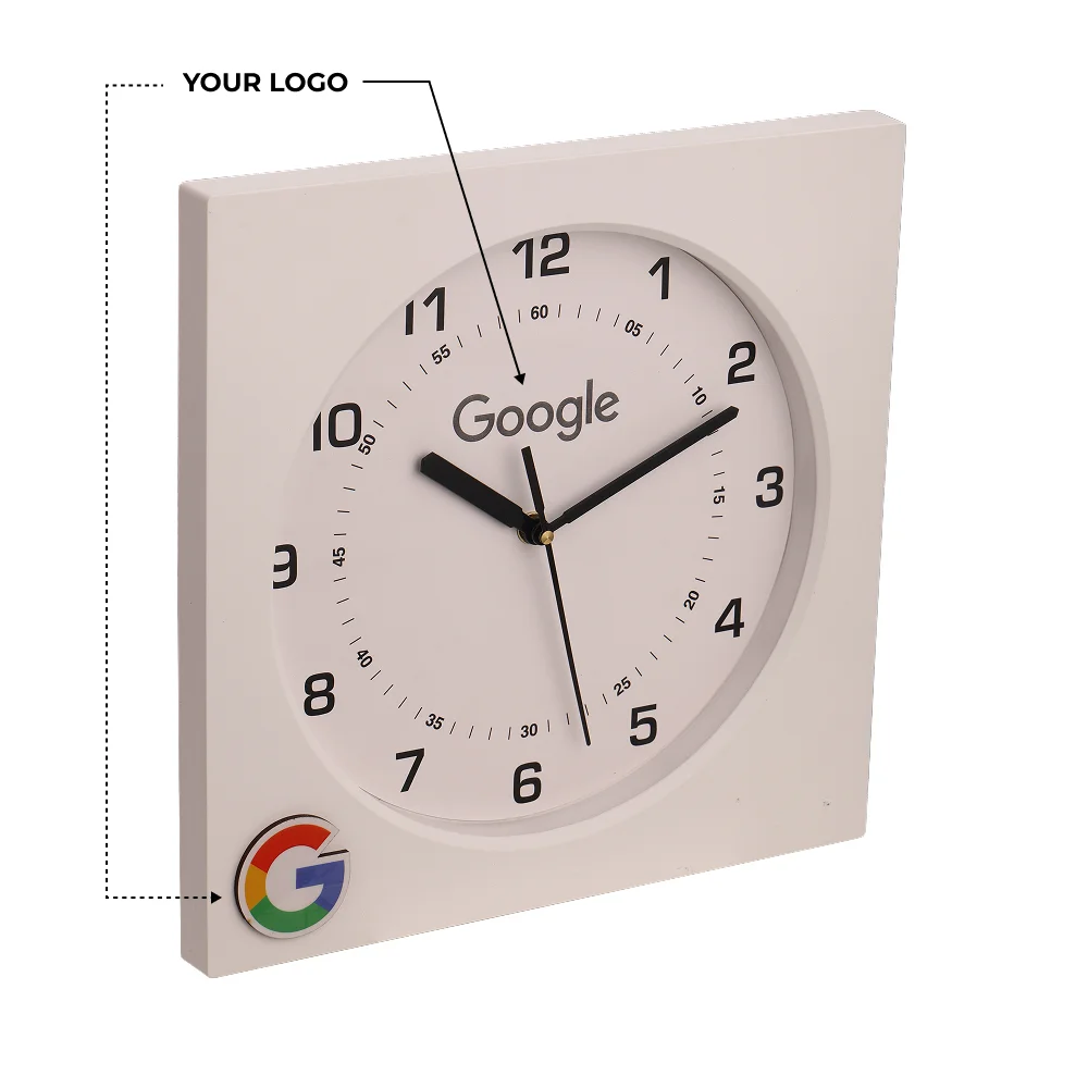Refined square wall clock brings a modern and well-balanced look to professional and residential interiors. The 10.5 × 10.5-inch frame paired with an 8.5-inch round dial ensures clear and comfortable time visibility. The analog clock display adds a classic touch while maintaining everyday functionality. Sturdy yet lightweight construction with a 570 g net weight allows easy and secure wall mounting. The smooth surface supports precise logo and design printing without affecting the overall aesthetics. Ideal for corporate gifting, office rooms, welcome kits, and home décor where style and utility come together.